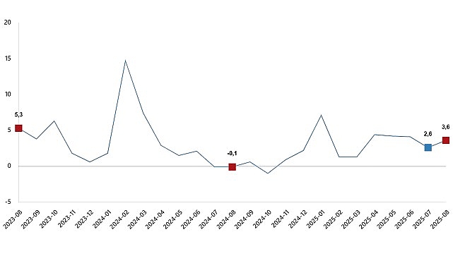 Hizmet üretim endeksi aylık değişim oranı (%), Ağustos 2025